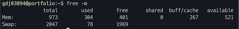 - 스왑 메모리가 삭제된 모습을 확인